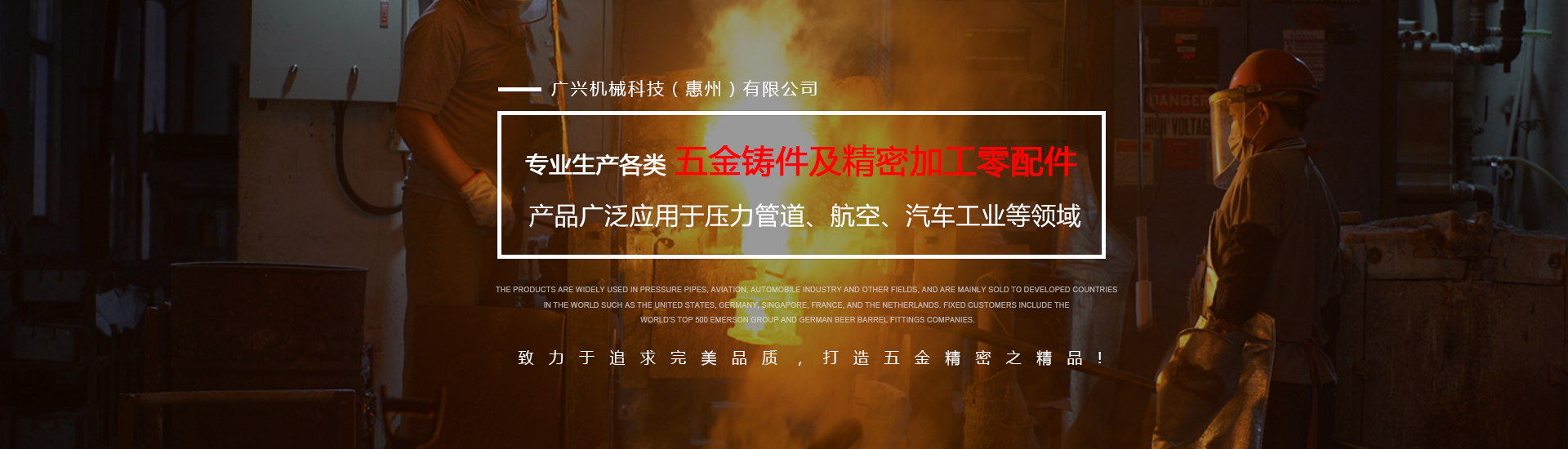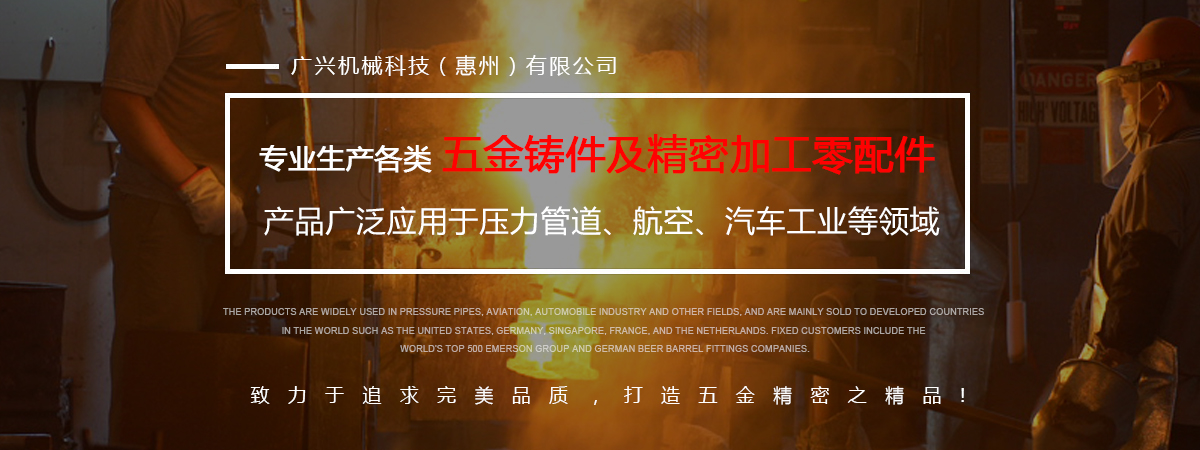 公司專業生產各類五金鑄件及精密加工零配件,可熔煉材質為全系列不銹鋼及碳鋼,主要生產材質有304、316、316L17-4、430、409等,年生產各種不銹鋼鑄件1000余噸。產品廣泛應用于壓力管道、航空、汽車工業等領域,主要銷往美國、德國、新加坡、法國、荷蘭等世界發達國家,固定客戶有世界500強艾默生集團及德國啤酒桶配件公司。